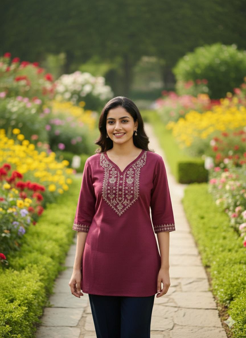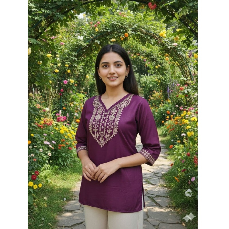 Embroidery work Rayon Tunic Style Short Kurtis