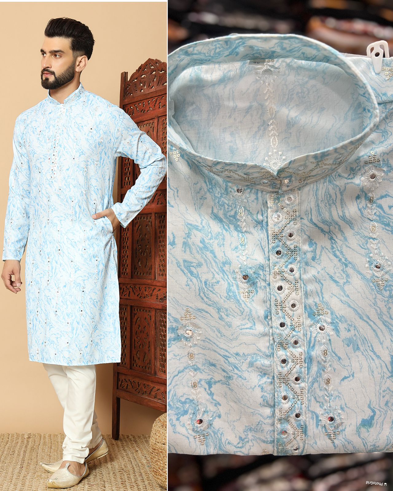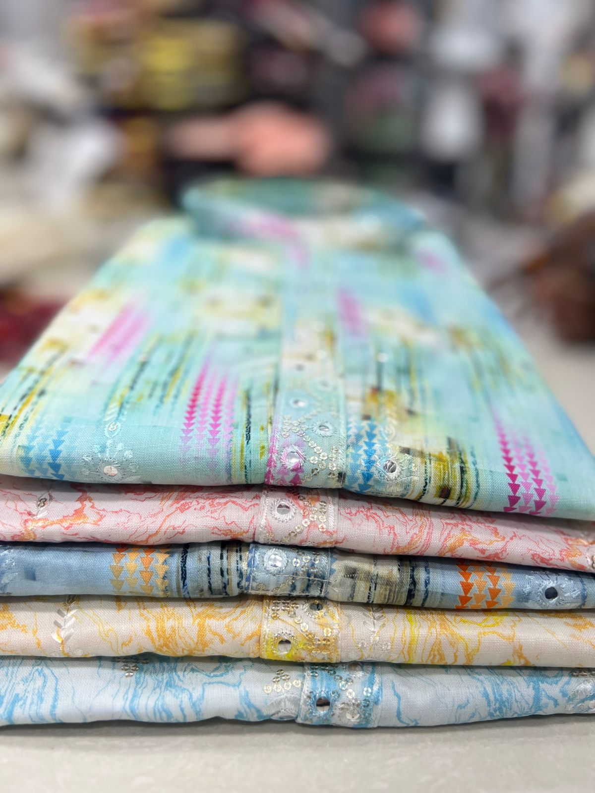 Fabric: Linen Cotton Printed with Embroidery sequins Work